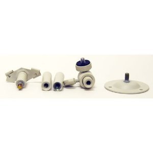 Each set includes two 2" shafts, one 2" X-base, one 1" base extender, one 2 3/8" round base and one head