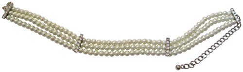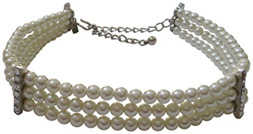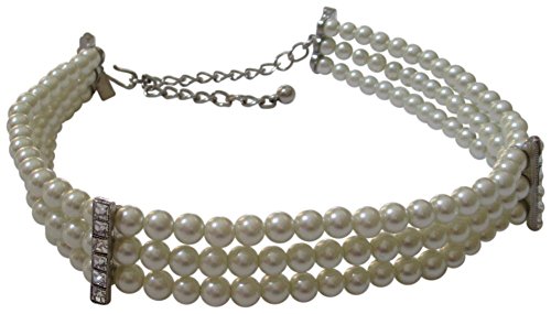 a multi-strand Kenneth Jay Lane choker made up of elegant imitation pearls and detailed with sparkling crystals. s hook clasp and adjustable length.