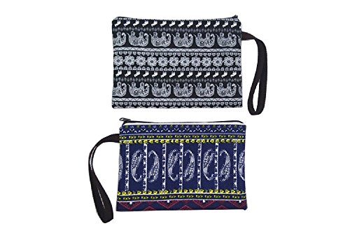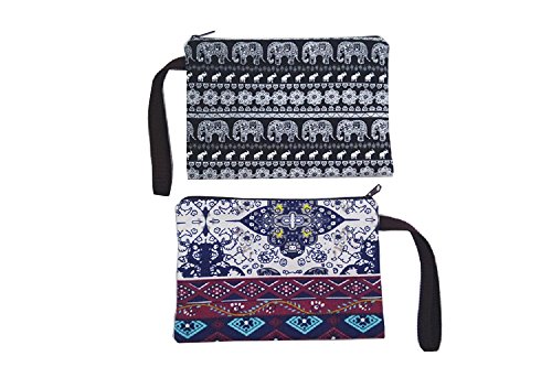Canvas Print (Elephant, porcelain) Zipper Pouch Bag for Cosmetic Makeup, Pencil Pen Case, Purse, Phone-2pcs