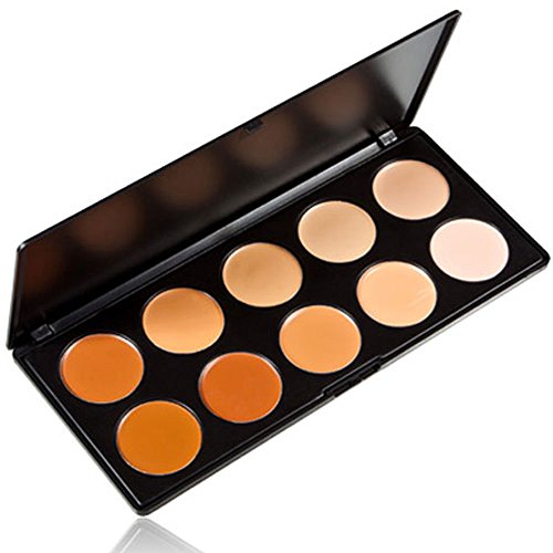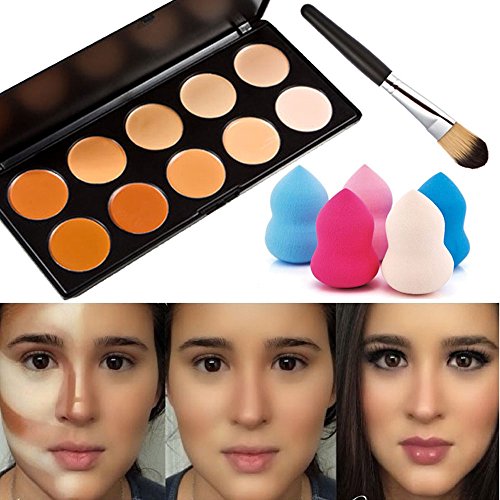 Feature : Cream concealers that offer terrific coverage on the dark circles, facial wrinkles and other facial defects and give you a new look. / High quality nylon material makes this brush comfortable and soft to use / With a cute waterdrop shape powder puff, soft, no irritation and helpful for creating perfect appearance (Color Random) / Package Includes: 1 x 10 Colors Concealer Palette; 1 x Makeup Brush; 1 x Powder Puff