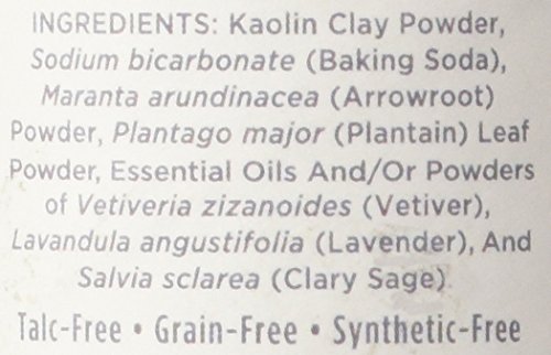 Blissfully scented natural and grain free body powder with essential oils of Vetiver, Lavender, and Clary Sage.