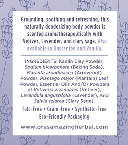 Natural Body Powder, Dusting Powder, No Talc, Corn, Grain or Gluten, non GMO, Ora's Amazing Herbal (Blissful Earth scent)