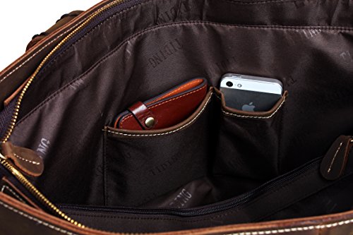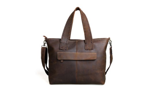 - Title : S-ZONE Genuine Leather Vintage Crossbody Tote Bag Casual Message Shoulder Handbag Brown