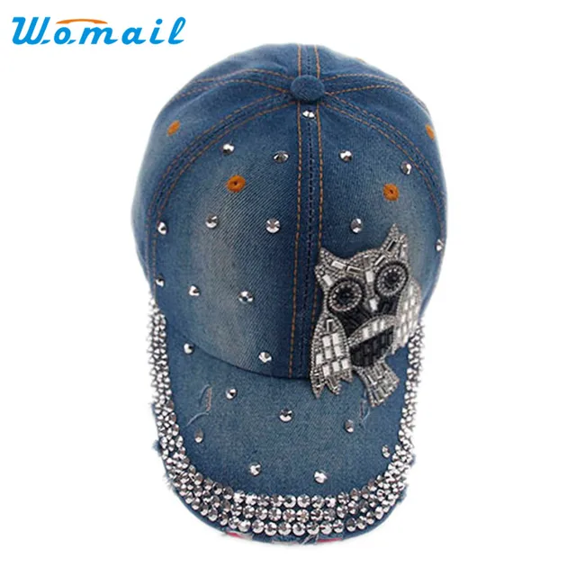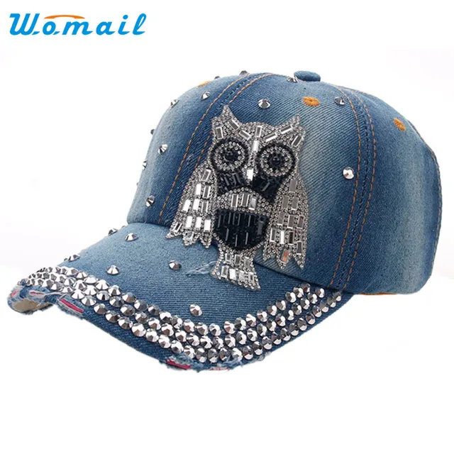 상품 내용 Womail 좋은 2017 새로운 블루 모자 여성 남성 올빼미 데님 라인 석 야구 스냅 백 힙합 플랫 모자 1 개 * 30