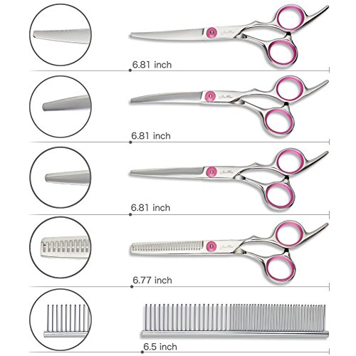 PRETTY TRAVEL-SIZE POUCH: Nothing is worse than not being able to get your pets grooming when you need it most. That is why we pack with a pretty case for easier carrying or storage; Each scissor is protected by a thick and suitable size bag in the pouch; For more protection tips, see the following Product Description zone; Could be Ideal gift or present for pet lovers
