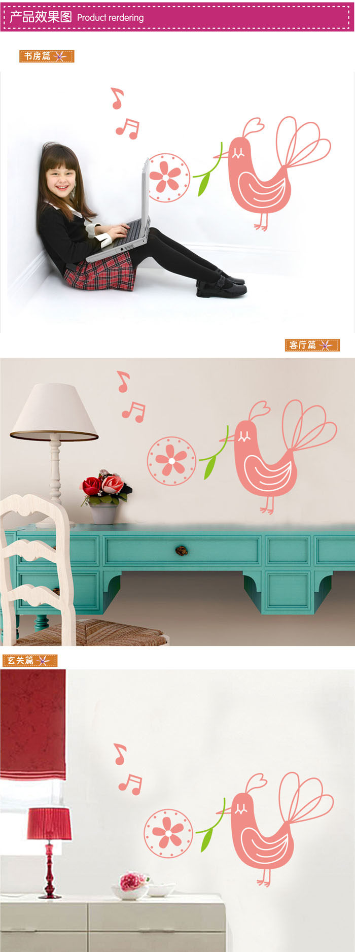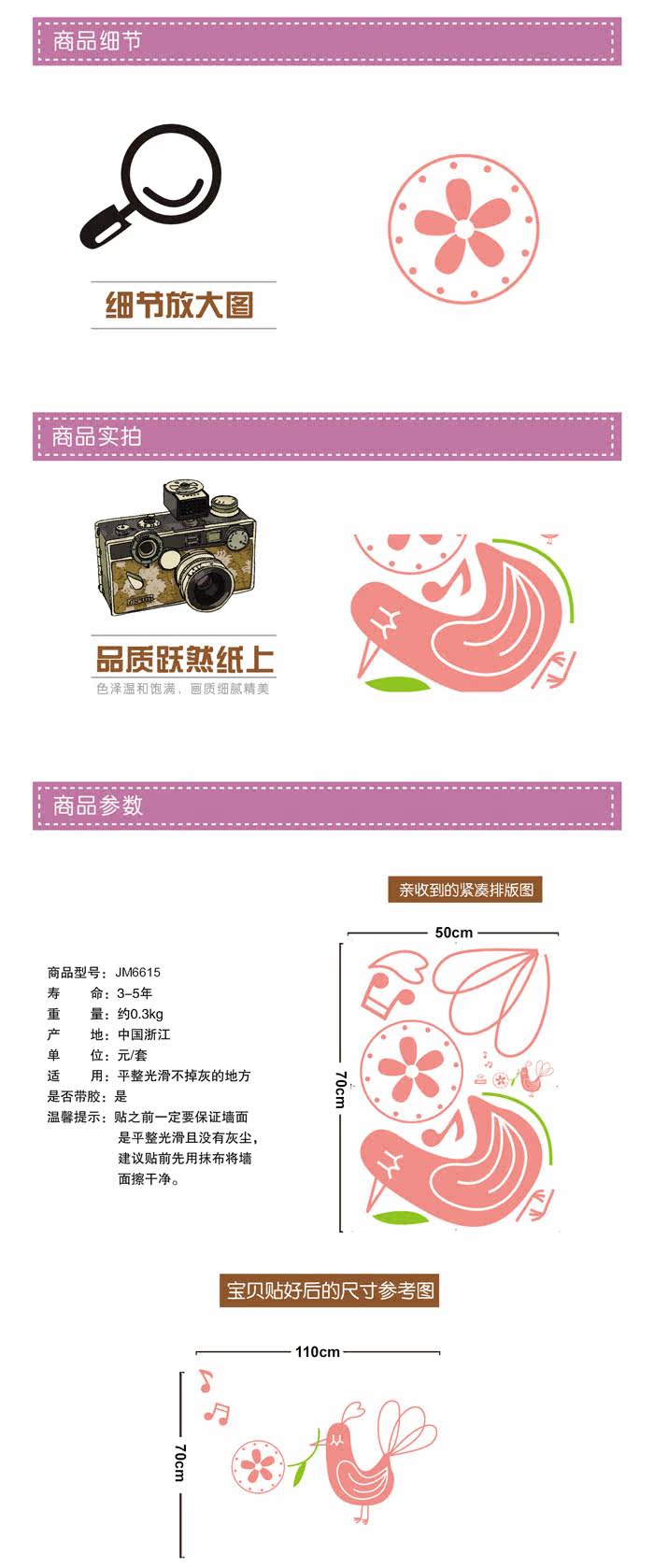 Material: environmental protection PVC, the back with plastic, removable