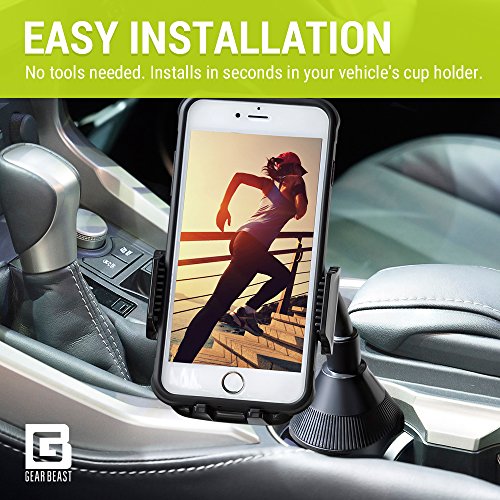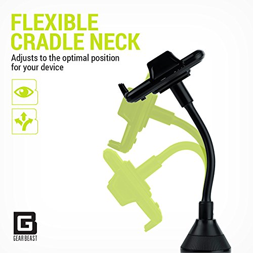 Universal Car Phone Mount, Extended Cup Holder Mount Cradle for Smartphones, iPod, GPS, MP3 including iPhone 7/7 Plus, 6/6 Plus, 6s/6s Plus, Samsung S8/S8 Plus, S7/S7 Edge, S6/S6 Edge, Note 5/4