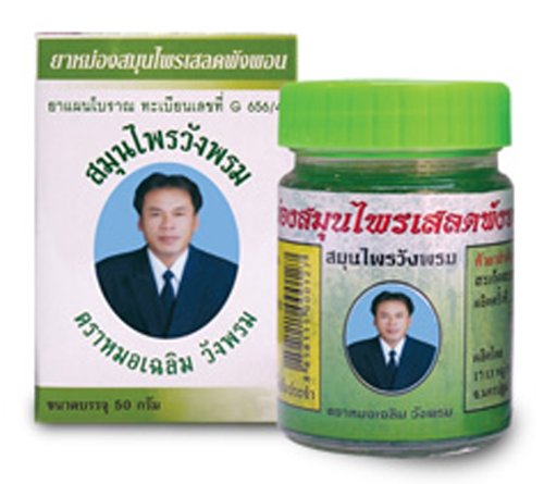 -. Title : Green Balm (Sa-let-pang-pon Balm) Wangphrom Thai Herbal Barleria Lupulina Massage Pain Relief (50g) Product of Thailand.