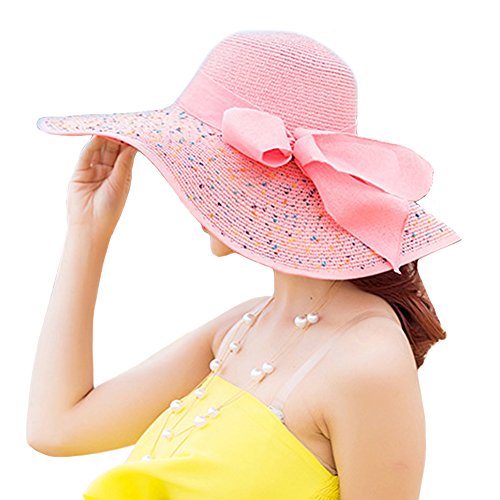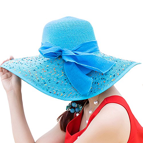 1. Material:Paper Straw;The hat is made of thick,soft and comfortable paper straw,keep you cool and comfy 2. Sun Protective:Rated UPF 50 Maximum Sun Protection,keep you away from directly ultraviolet ray 3. Large Brim:The hat can keep your face and shoulders in the shade 4. Colors Style:Colorful dots;Beige/Jewelry Blue/Khaki/Navy/Pink/Rose/Sky Blue/Watermelon to be chosen 5. Size:Hat circumference 22"-22.8",Hat depth 4.8",Hat Width 6" 6. Foldable:It is easy to pack up to put in your bag when you don't need it in shade 0