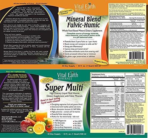 Vital Earth Minerals Kit Super Multi Liquid Vitamins and Mineral Blend Fulvic-Humic 32 Oz. Each