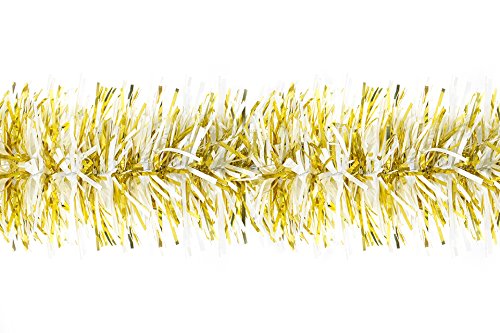 Queens of Christmas HP-GARST-WH/GO-04 Mylar Stuffed Artificial Christmas Garland, 4", White/Gold