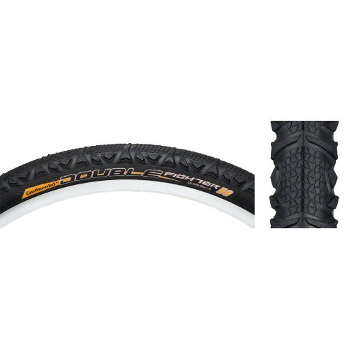 Studio : Continental Publisher : Continental Binding : Sports Product Description Continental 0115870 Double Fighter II-26 x 1.9 Urban Tire is modeled on the successful concept of its predecessor. The center, with its light tread, rolls smoothly and quietly on tarmac. Off-road, the shoulder‘s heavy tread provides the necessary grip. The Double Fighter II playfully combines high speed on the road with reliable grip on off-road terrain This means it is also suitable for MTBs Hybrids that are used mainly on-road and occasional light off-road terrain. The use of a tough 'gumwall' sidewall means that the tire will be more resistant to urban debris and the service life of the tire will also be improved. Ideal for commuters needing on/off road performance and reliability. Specs: Weight - 780 grams; Recommended PSI - 50; Maximum PSI - 65; PU - 10. 0