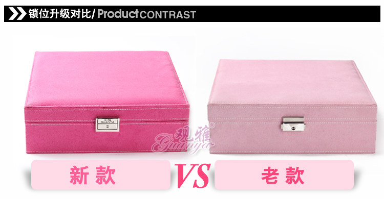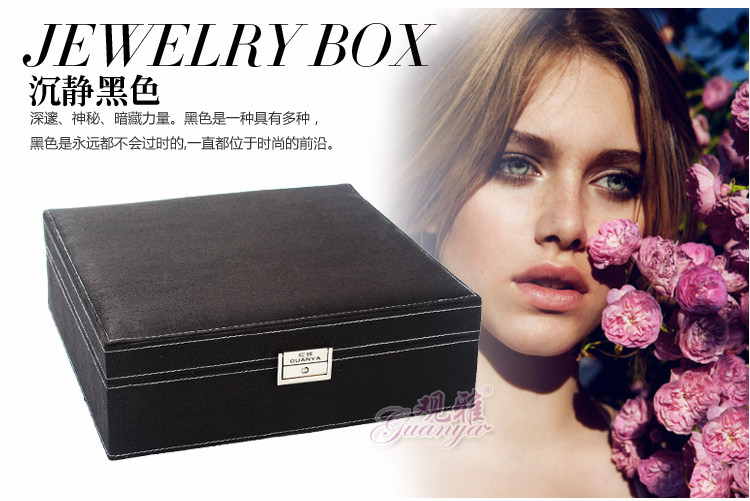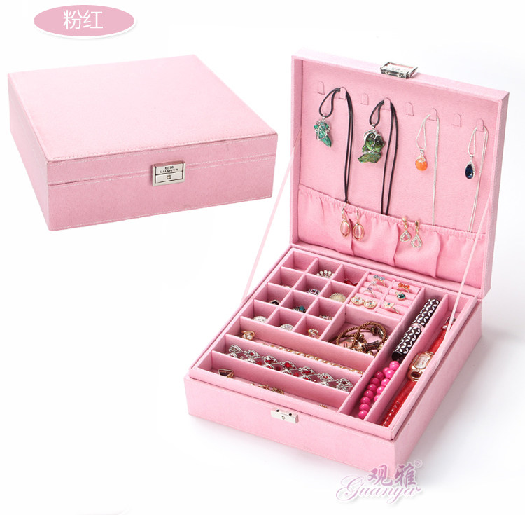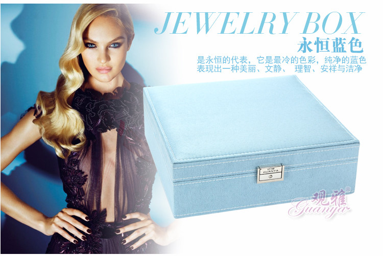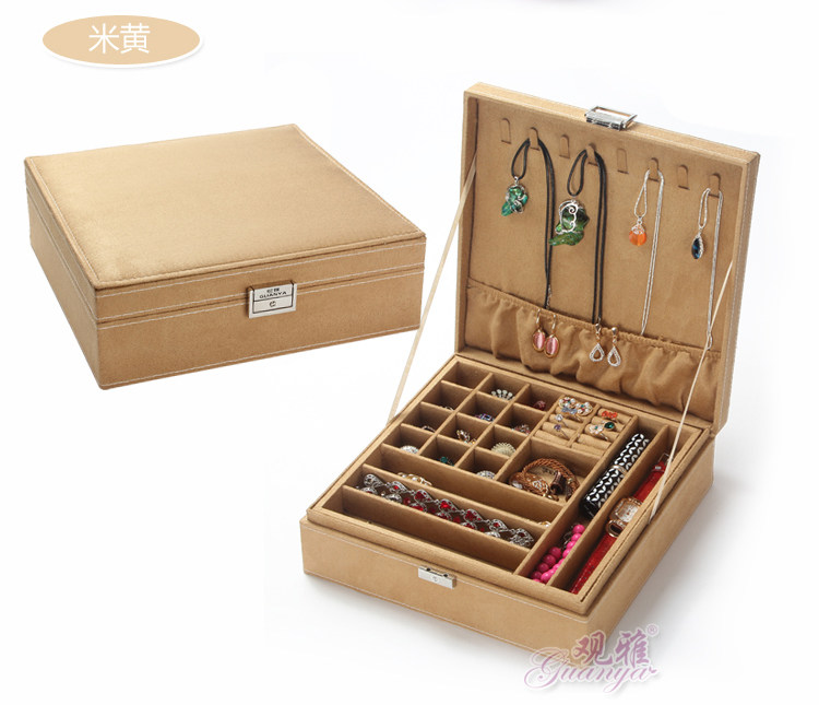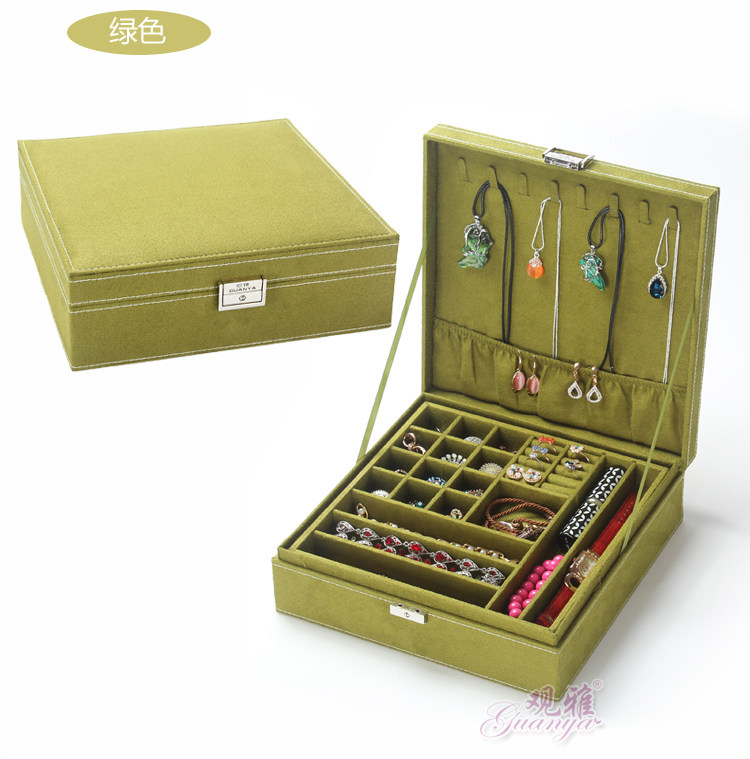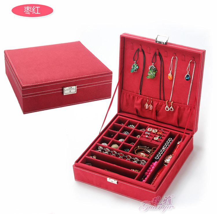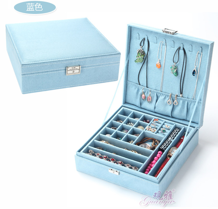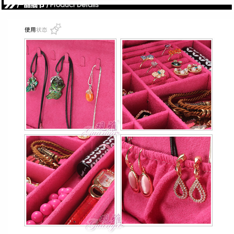 Structure: two storeys, have received a pocket, necklace or bracelet clasp 8 on the lid, the first layer has a long grid 5, small cell 12, a small box, ring bit 2, the second layer 9 squares, you can put the bracelet hand ring.