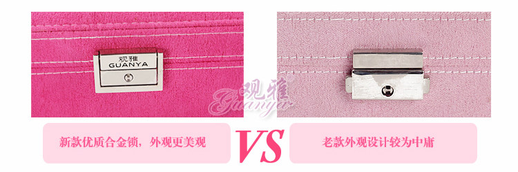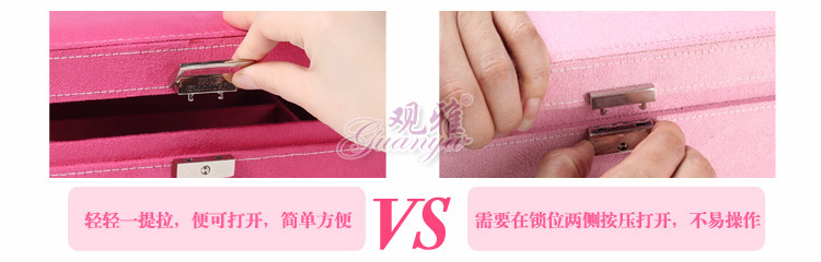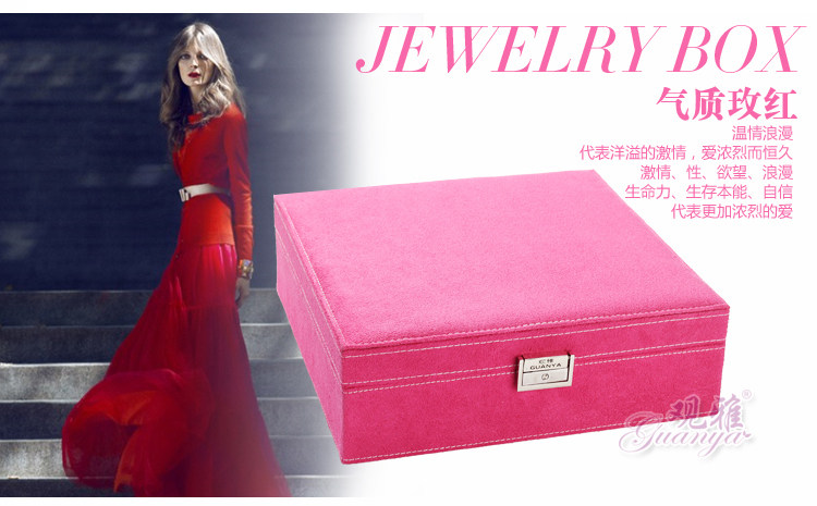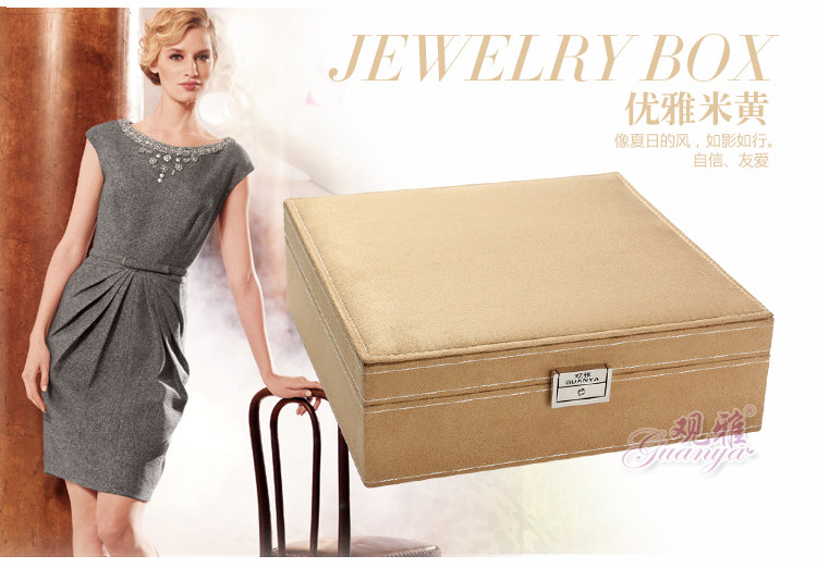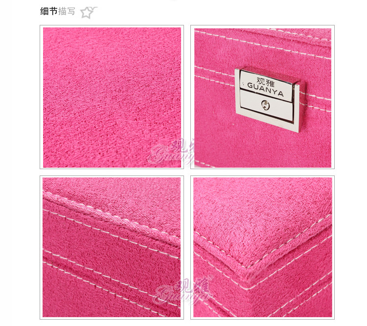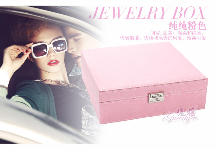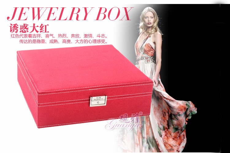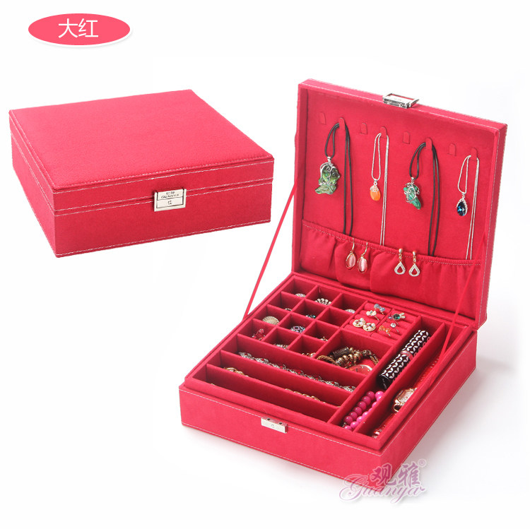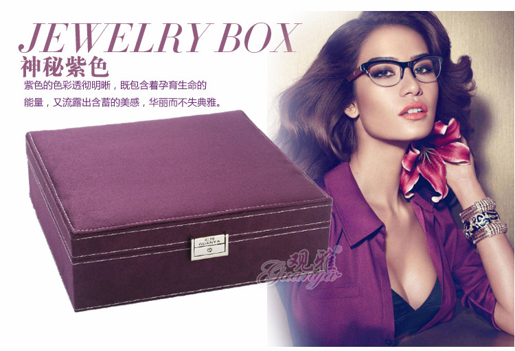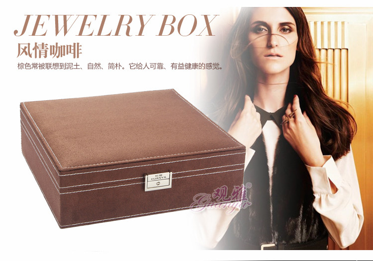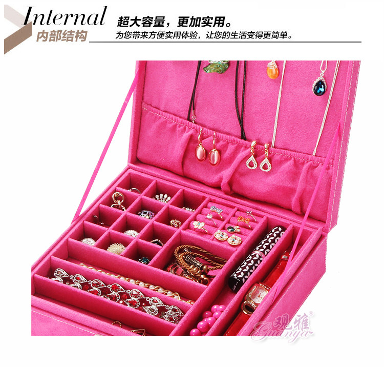 Structure: two storeys, have received a pocket, necklace or bracelet clasp 8 on the lid, the first layer has a long grid 5, small cell 12, a small box, ring bit 2, the second layer 9 squares, you can put the bracelet hand ring.