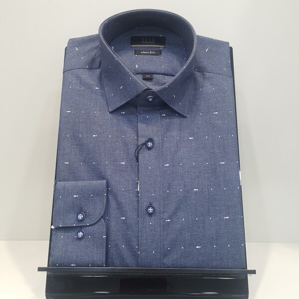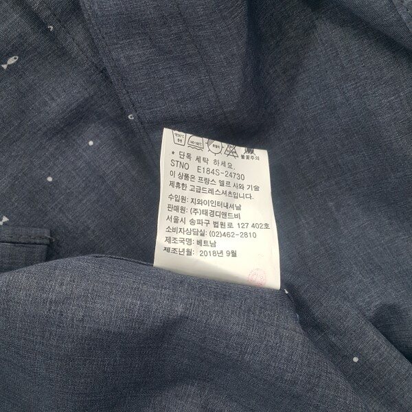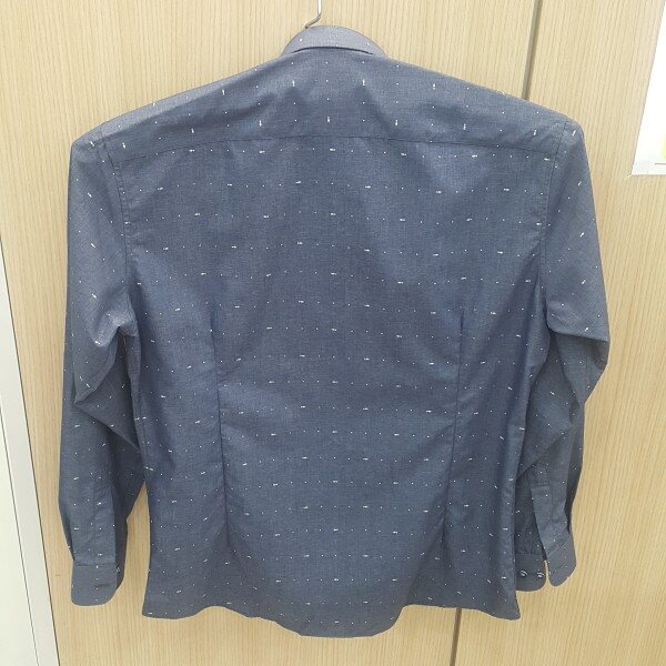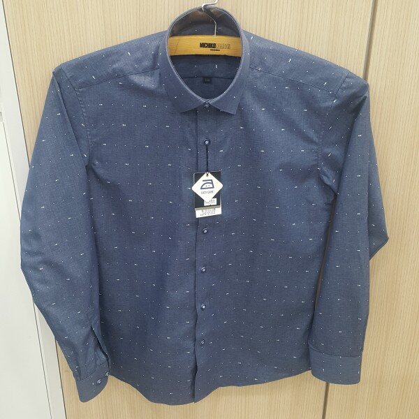 네이비 바탕에 물고기 패턴을 포인트를 준 캐주얼 셔츠구김이 적고 다림질이 편리한 이지캐어 셔츠입니다슬림핏으로 정장이나 캐주얼 면바지랑 코디하셔도 좋은 아이템