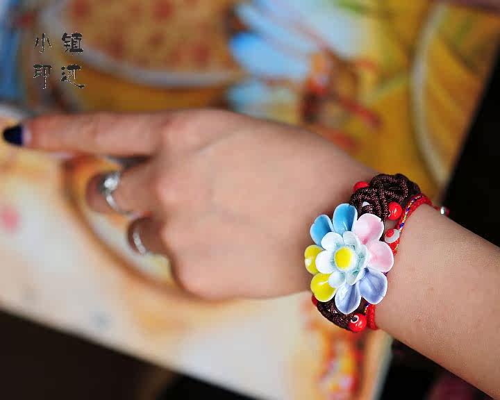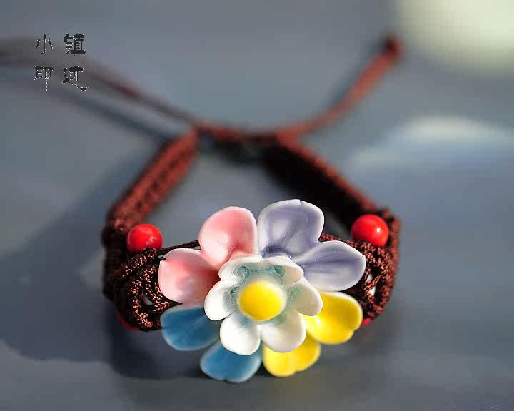 材料:彩绘陶瓷,棉线,小陶瓷珠