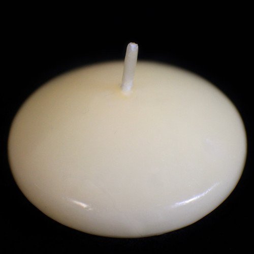 - This candle set comes in a pack of 50 floating candles, enough to have a couple as the table centerpiece for your wedding favor candles. Each white floating candle measures 2" inches, similar to the shape and size of tealight candles.