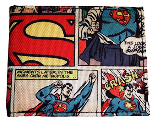 -. Brand : Main Street 24/7 -. Color : multi-color -. Department : Unisex-Adult -. Feature : DC Comics SUPERMAN Comic Book Panels Bi-Fold WALLET / Multi-Color Bi-Fold wallet features various panels from Superman Comic Books / Inside of wallet features ID window, billfold and multiple card slots -. PackageQuantity : 1 -. ProductGroup : Apparel -. ProductTypeName : LUGGAGE -. Size : One Size, Bifold -. Title : DC Comics SUPERMAN Comic Book Panels Bi-Fold WALLET
