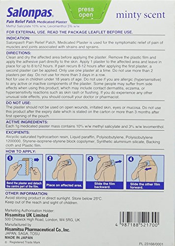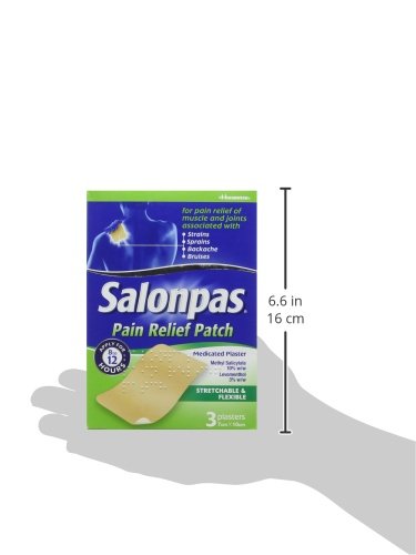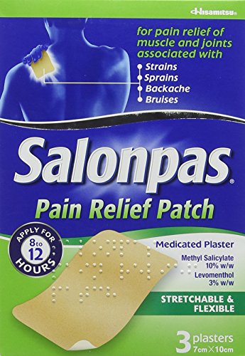 -. Feature : Salonpas pain relief patch x3 / Aches and pains associated with arthritis, sprains, strains, bruises / Powerful Relief that lasts up to 12 hours / Pain relief without Tablets