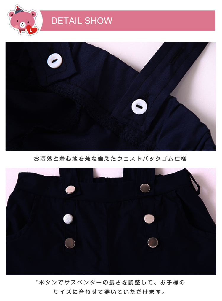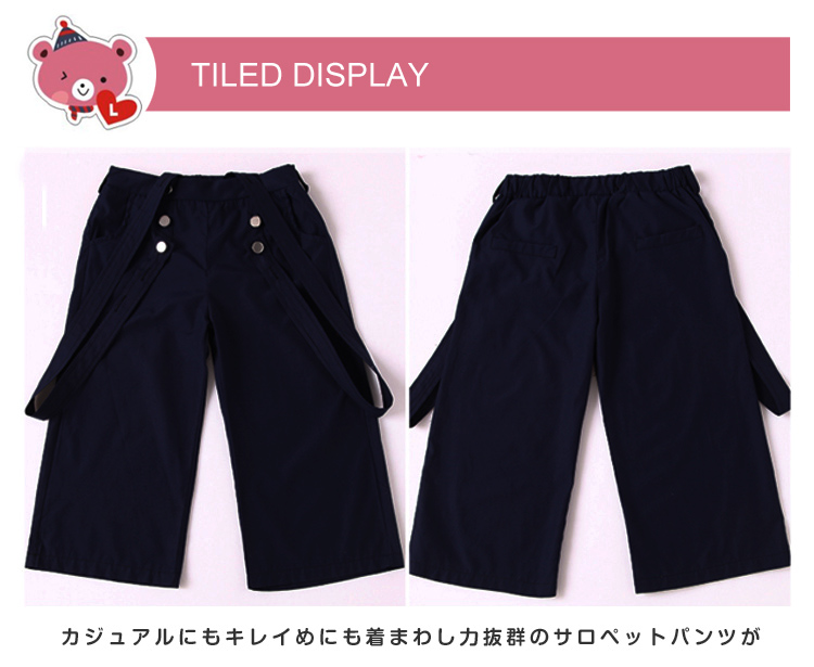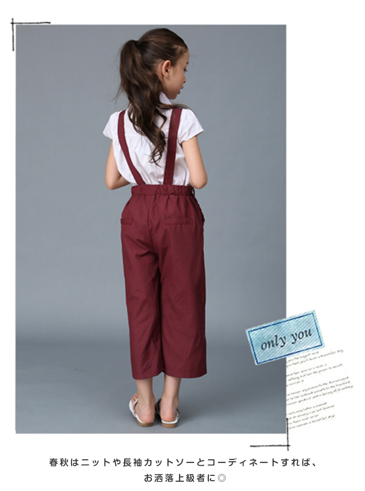 | 今風のワイドサロペットパンツが入荷しました。涼しげな足首見せデザインがスタイリッシュアップ、季節の変わり目にバッチリ◎お子様の成長に合わせて着用頂けるサスペンダー調整可能デザインが嬉しいpoint暑い時は半袖ブラウスと合わせて、お洒落満載!春秋はニットや長袖カットソーとコーディネートすれば、お洒落上級者に◎カジュアルにもキレイめにも着まわし力抜群のサロペットパンツが長時間愛用されるから重宝します。 | |
