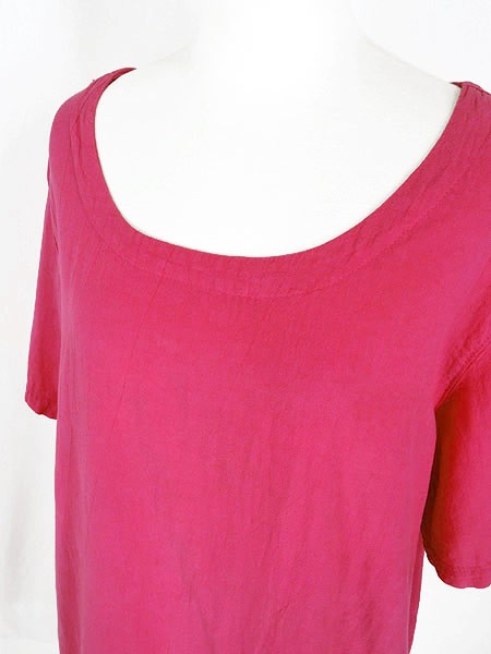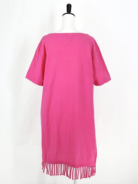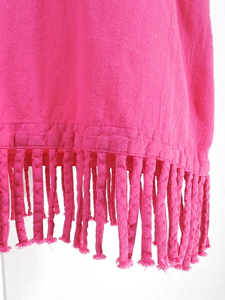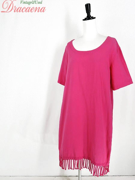 Ladies ブランド- カラービビッドピンク メール便不可 コンディション★★★ 素材コットン 表記サイズL 実寸サイズ 着丈 90 cm (フリンジいれて98cm) 身幅 55 cm 肩幅 47 cm 袖丈 25 cm ※ウエスト・ヒップ以外は平置き採寸【code】#d