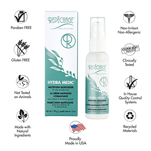 This professional-grade mattifying moisturizer is part of the award-winning collection Hydra Medic by Repechage. Repechage, since 1980, is the leading seaweed-based professional skin care line trusted by salons and spas worldwide.