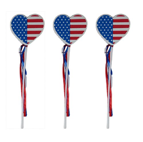 Heart Flag on a Stick Foam Wand with Ribbons 3 Pack for Parties, Parades, Rallies, and More