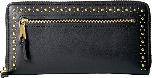 This smooth leather handbag has 18K gold hardware finish, signature heavy stitch details. With interior and exterior pockets.