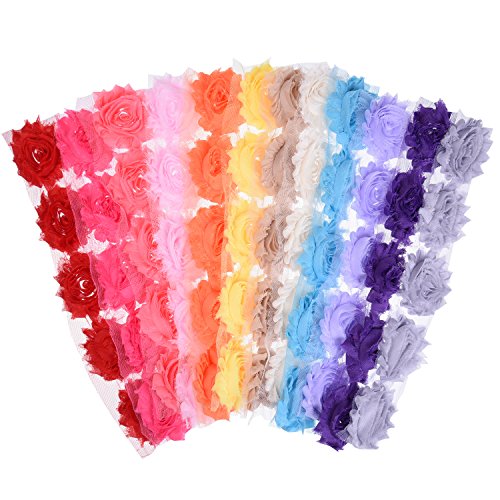 - Quantity: 60 pieces (12 strands of shabby fabric flowers, 5 pieces for each color and 5 pieces on 1 strand), plenty chiffon flowers will meet your needs for DIY