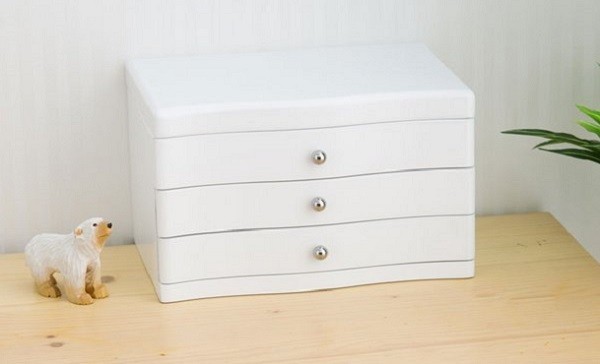 【商品名】ジュエリーボックス(宝石箱) 3段 引き出し収納付き ホワイト(白)