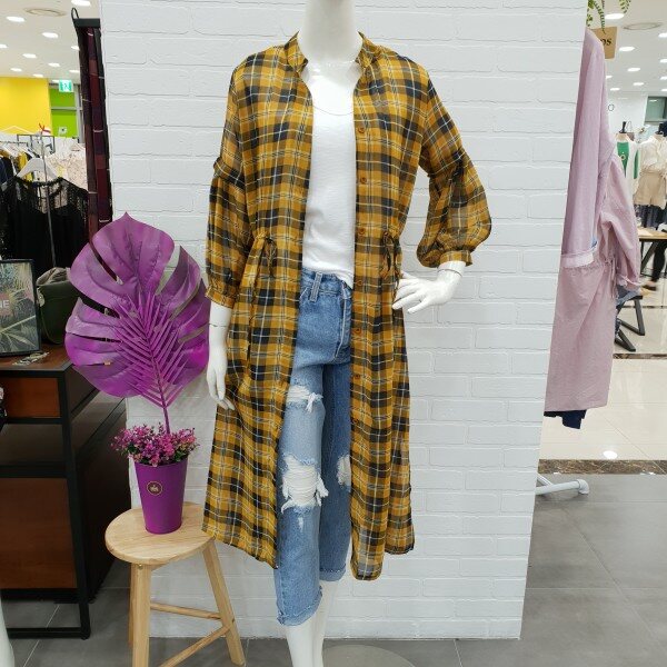 여름하면 로브가디건이죠!멋쟁이 라면 꼭 입어야 하는 로브스타일..ㅎ시원시원한 소재와 멋스러운 체크패턴이 여름에 코디하기 좋게 잘나왔어요.허리선의 스트링이 라인을 잡을수 있고 소매단 셔링이 여성스러움과 밑단 트임 또한 옷맵시를 살려주는 로브가디건이예요.여름까지 인기 아이템으로 멋내보세요.