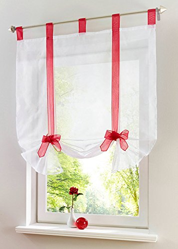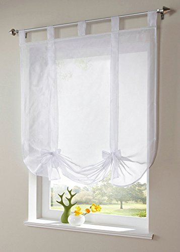 Uphome Silk Ribbon Bowknot Viole Roman Window Curtain with tab tops - features a crossing ribbon sheer panel with bowknot will add a touch of loveliness and charming to your room.