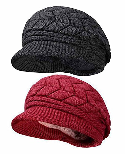 Package Included 1 x Women Winter Hats Knit HINDAWI Crochet Fashions Snow Warm Cap with Visor