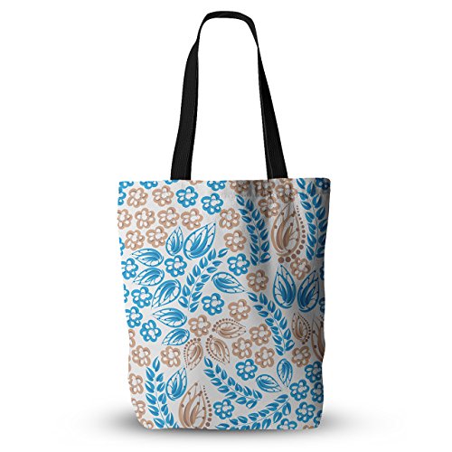 KESS InHouse Maria Bazar ova "Blue White Flowers" Abstract Beige Everything Tote Bag, 18" x 18", Multicolor