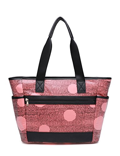 3.Zipper top closure. This large tote can accommodate 14" laptops, folders, A4 files, books, iPad, cosmetics, cellphone, charger, water bottle, wallet, lunch box and more.