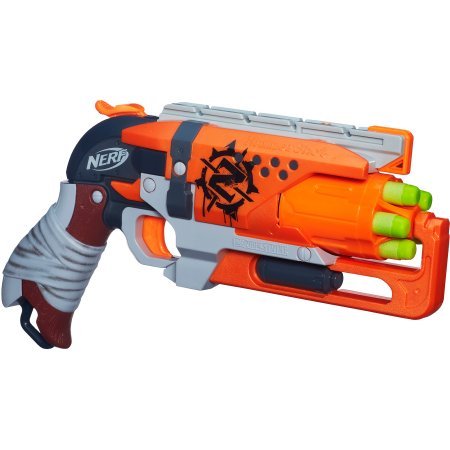 -. Title : Nerf Zombie Strike Hammershot Blaster Holds five Zombie Strike darts for rapid play