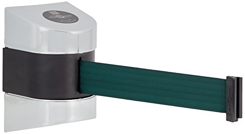 Tensabarrier 897-30-W-1P-NO-G7X-C Polished Chrome Warehouse Rack Mount Wall Unit with Standard Belt End, 2" Wide, 30' Length, Dark Green Belt, 7.25" Height, 4.75" Width, 4.25" Length
