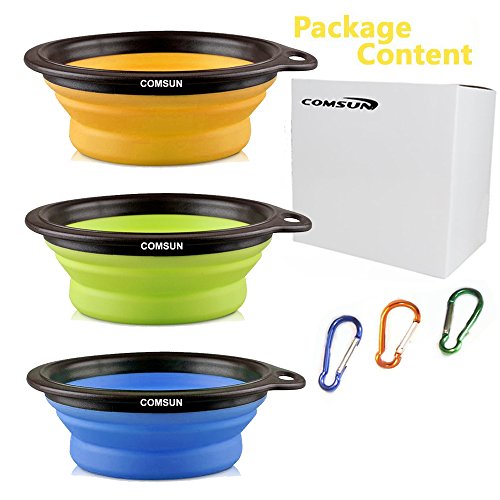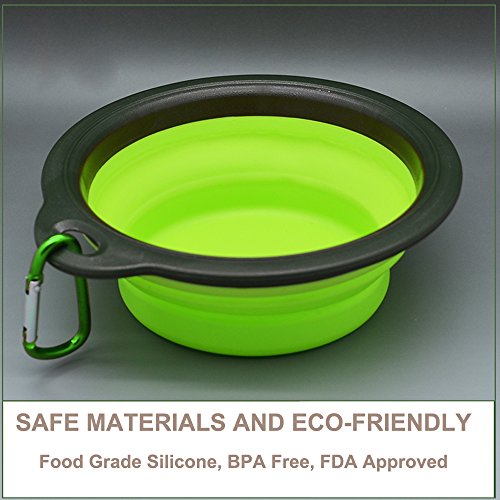 - EASY FOR STORAGE AND TRANSPORTATION: Non-Slip collapsible dog bowl set great for travel dog bowl, pet travel bowl and cat food bowl - The Bowls include color-matching carabiners clip it or collapse it to your backpack, purse, dog travel crate, dog training leash or collapse flat for your pocket, stroller, glovebox AND MORE! Terrific Pet Supplies for Dogs Water Bowl or Dog Travel Bowl