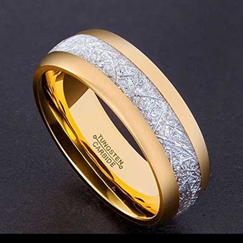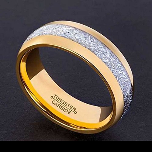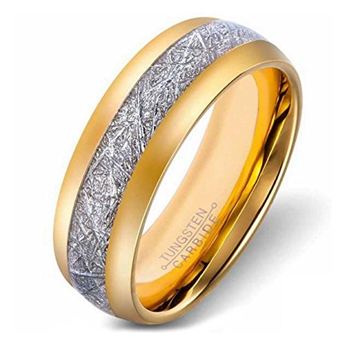 LAMUCH Men's 8MM Wide Plated 18K Gold Carbon Fiber Tungsten Steel Ring Size6