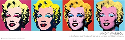 This poster features a series of pop art images of Marilyn Monroe by artist Andy Warhol.