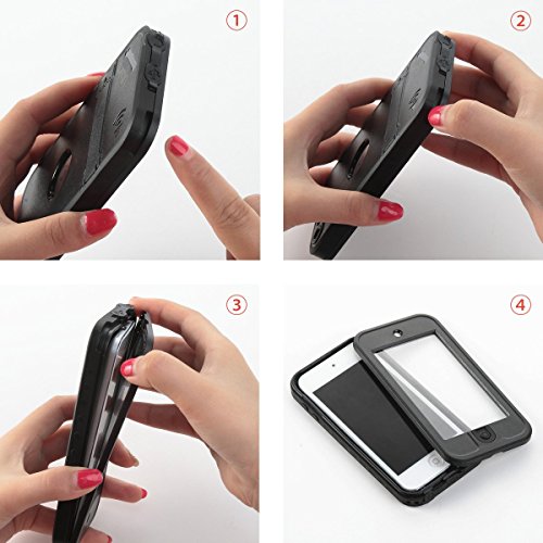 -. Feature : Specially designed for Apple iPod Touch 5 & 6th Generation,not fit for ipod touch 4 or other phone case. / Easy and complete access to all key functions like volume, charging, headphone jack, home button , mute, power and etc / IP68 standard Waterproof and fully sealed, submersible to over 6.6 ft deep;red built polycarbonate frame with exceeded military standard, withstanding shock and drop from 6.6 ft high / Front cover with built-in screen protector of crystal clarity prevents scratches without compromising sensitivity; / Back cover with soft fabric interior prevents scratch and absorbs shock;Comes with a kickstand on the back, free your hands with horizontal viewing when watching movie or Facetime