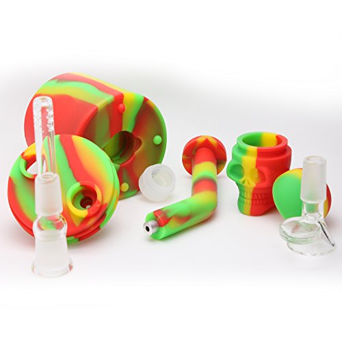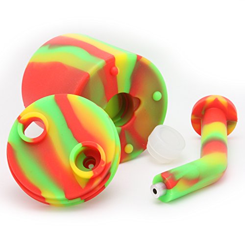 ROUND - Mini Silicone Water Rig – Portable Detachable Unbreakable – Travel & Easy to clean (Rasta)