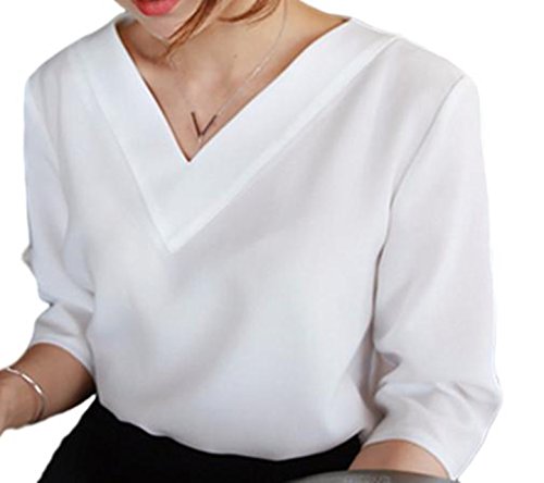 -. Feature : 七分袖、裾スリット入り後ろが長めのデザイン。トレンド感を上品に醸し出すVネックのプルオーバーブラウス。 オトナ女子こなれスタイルに。 / きちんと感と、着心地の良いさらりとした素材感が魅力。 すっきりVネックで華奢見えします。 / ほのかな光沢を放つ風合いに、すっきりとシャープに開いたネックラインが甘すぎない大人の着こなしに。デニムでカジュアルに着こなしたり、スカートできれいめに着こなすのもお勧め。 / やや短めの着丈なので、トレンドのワイドパンツやハイウエストボトムとも相性抜群です。 オン・オフ問わずご活躍頂けるお薦めの一枚。 / 【カラー】グレー(灰色)、ホワイト(白) 【サイズ】M、L、XL