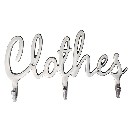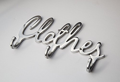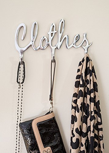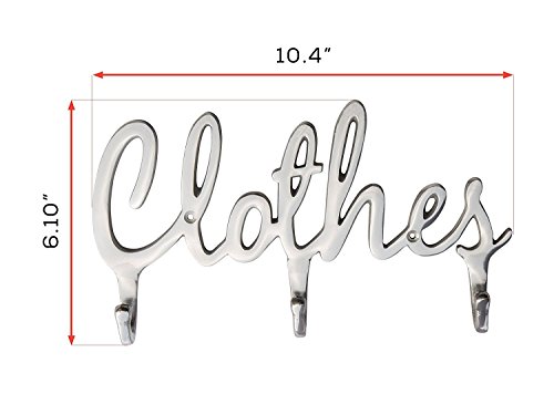 Shabby Chic Style "Clothes" Coat Rack Hooks by Comfify | Polished Metal Contemporary Wall Mount Clothing Hooks | 4 Wall Hooks, Snappy Cursive Font Design, Makes Organizing Easy | Includes Screws