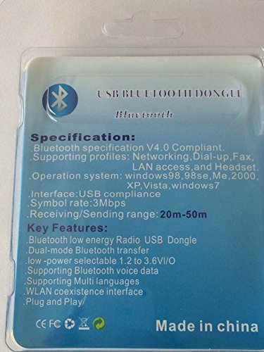 -. Binding : Electronics -. Brand : Vstorm -. EAN : 0746856728223 -. Feature : Bluetooth 4.0 USB Micro Adapter Dongle Achieved with CSR8510 Class 2 Low Energy Controller fully Content with Bluetooth 4.0 Specification. / 24-Bit CRC Verification Adaptive Frequency Hopping(AFH) Enabled allow a Reliable Connection up to 3Mbps and 100 Metres (Peer to Peer) with any Bluetooth Enabled Cell Phone,Tablet,Speaker,Headset or Headphone,Mice and Keyboard. / Advanced Audio Processing Exclusive for Bluetooth 4.0 Voice Quality Enhancing allow to Process AAC Audio Losslessly as well as Process MP3,WAV,APE or FLAC. / Compatible with Classic Bluetooth Plug and Play Enabled Fingernail Size Micro Adapter allow to Plug and Forget. / It is an Ideal Solution to transfer File,Audio or Voice Wirelessly for your Desktop and Laptop.Allow Cell phone,Tablet and any Bluetooth Devices connect to Speaker,Headset of Computer with Bluetooth and Playing Music of transfer Voice,Update your Wired Speaker or Headset to Bluetooth Easily. -. Label : Vstorm -. Manufacturer : Vstorm -. Model : ES-01 -. MPN : ES-01 -. PackageQuantity : 1 -. PartNumber : ES-01 -. ProductGroup : PC Accessory -. ProductTypeName : COMPUTER_COMPONENT -. Publisher : Vstorm -. Studio : Vstorm -. Title : Vstorm Micro USB Bluetooth CSR 4.0 Adapter Dongle Achieved with CSR8510-High Speed 3mbps Wireless Receiver,Includes CSR Harmony CD Software for Windows 8 / Windows 7 / 2000 / Vista / XP -. UPC : 746856728223