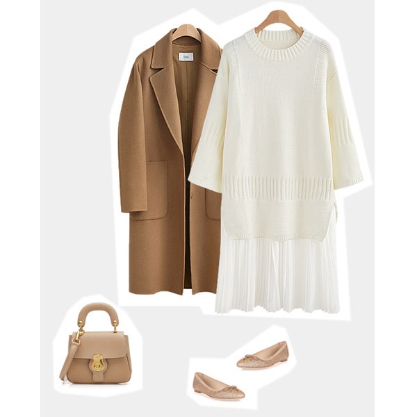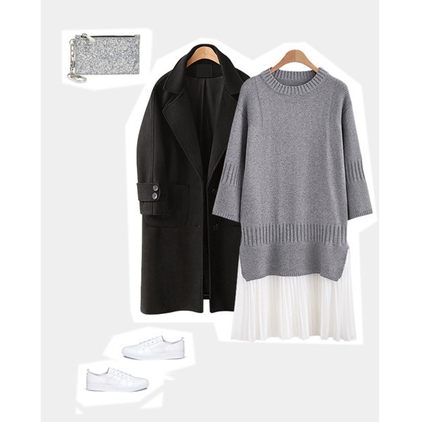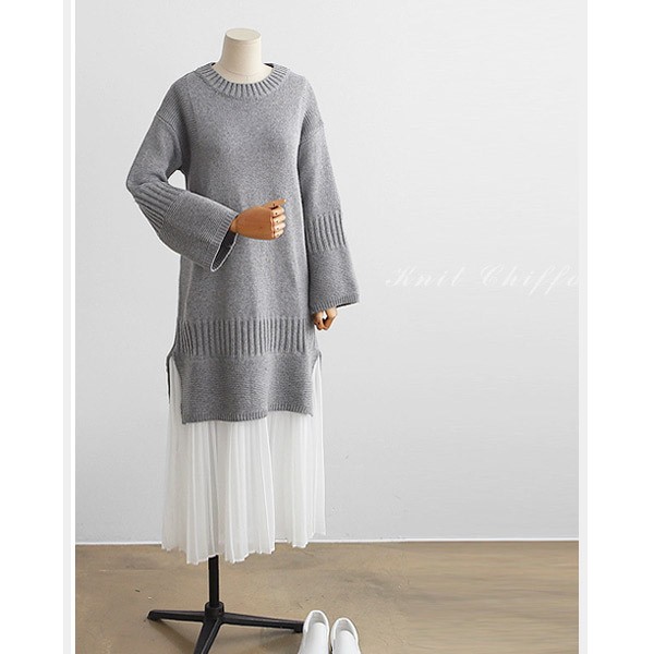 | 素材 | ポリエステル70%/アクリル30% (伸縮性:あり/透け感:あり(シフォン部分)/裏地:なし) |