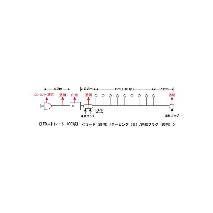 원본상품명: イルミネション 防滴LEDライト ストレト 100球 全10色
