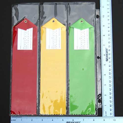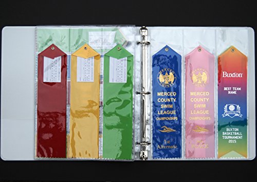 10 pages, fit 3 award ribbons perfectly each page. Great way to organize, display, and store your Larger Award Ribbons !