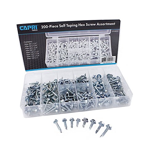 Capri Tools 10024 Hex Self Tapping Screw Assortment, 200-Piece