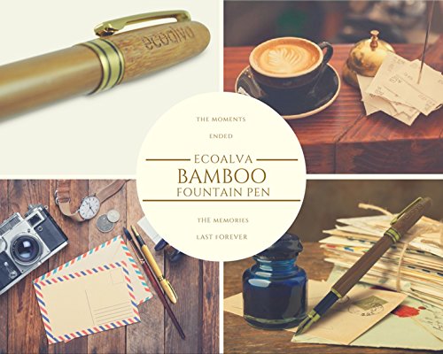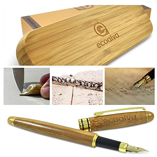 Premium Handcrafted Bamboo Fountain Pen Writing Set By ecoalva - For Signatures & Calligraphy - Handcrafted Bamboo Case Luxury Gift Bundle with Ink Refill Convertor - 100% Eco Friendly Fancy Pens